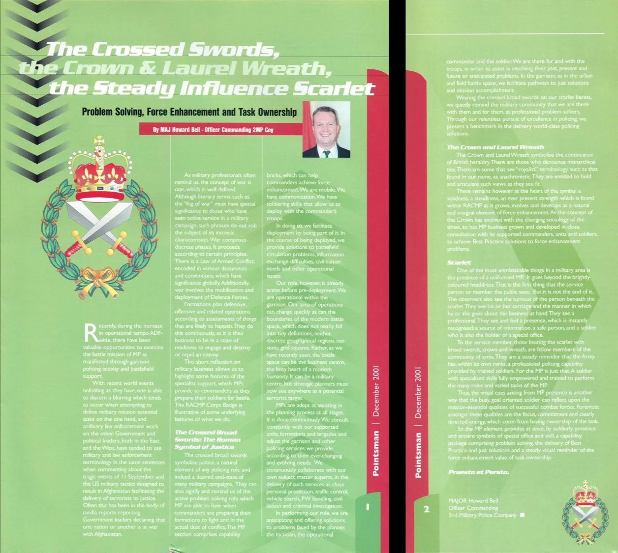 Published in Pointsman, December 2001 by MAJ Howard Bell - Officer Commanding 2MP Coy