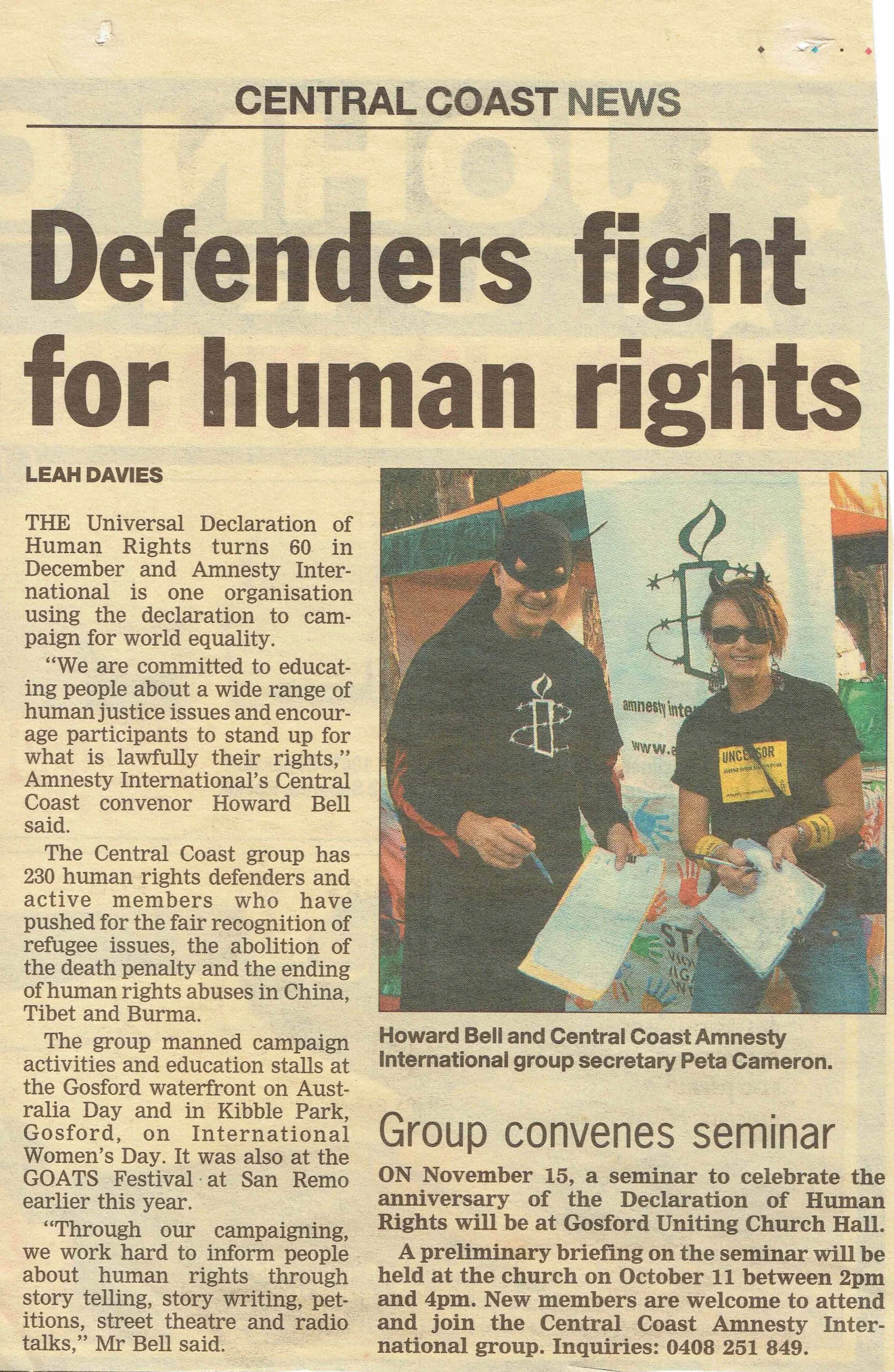Central Coast Amnesty International group is vigorously campaigning for an Australian human rights act to protect the dignity and fundamental rights of all citizens.