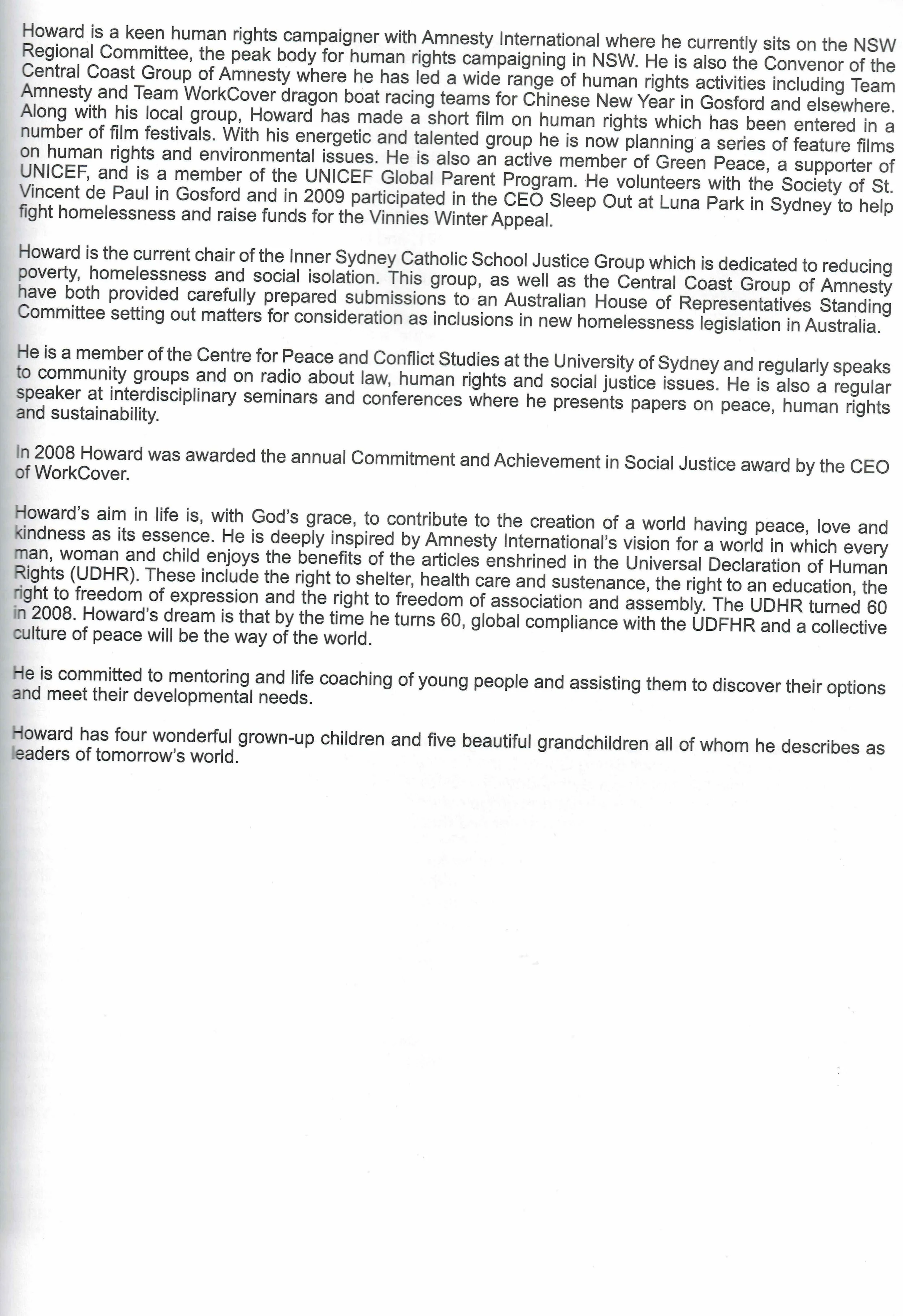 Howard was featured in the publication, “Significant Men of the Central Coast” in 2009.